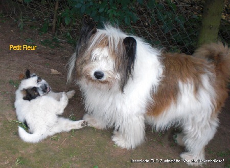Drops von der Hexenbrücke: Bewertungen: 1. Platz in der Zuchtschau vom 28.9.-30.9.07 in Hermannsburg-Baven und 3. Platz "Schönster Rauhaar-ELO". Ihr Wesen wurde mit "Vorzüglich" und Standart mit "Sehr gut" bewertet; Hüfte A2, Patella Grad 0, Augen: Frei von vererbbaren Augenerkrankungen incl. Gonioskopie vom Januar 2011; >> Eltern: Claire v. Rodeland & Alex v.d. Silbertalern _ Alex vererbt ein tolles Wesen und Intelligenz, er selbst bringt auf Aufforderung unterschiedliche Gegenstände. Das hat er an seine Nachkommen weiter gegeben, sie lernen sehr schnell, sein Ahne war bereits Therapiehund