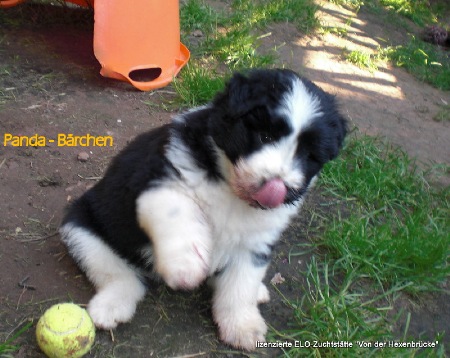 Panda - Bärchen 02.2012 Frauchen schreibt, sie hat ihr den Zweitnamen "Panda freundlich" gegeben, da sie zu jedem so freundlich ist. Im Vergleich zu ihren Artgenossen im Welpenspiel ist sie eher ruhig und ausgeglichen, spielt gern aber heftig toben - nein.
