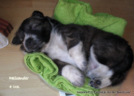 Palisander "Minou" hat erste Bilder aus ihrem neuen Zuhause geschickt, sie hat zwei große Freunde, die auf die kleine Maus aufpassen. Auch in die Welpenschule geht sie schon mit Frauchen. Die Öhrchen stehen schon steil, Palisander war, trotz dass sie die Kleinste war, in der Entwicklung ihren Geschwistern voraus.