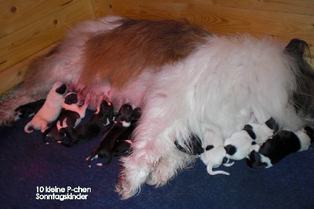 Wir dürfen uns über eine wirklich total bunte Welpenschaar freuen, denn von weiss über rot bis Kasi´s melierte Farbe ist alles dabei und es sind 7 Mädels und 3 Rüden. Danke Drops!! für diese wunderbaren Welpen und Danke an Nina und Kasi natürlich, die es mir möglich machten und uns Kasi für ein paar Tage überließen.