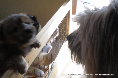 Grenada von der Hexenbrücke: pflegeleichtes Rauhaar in kräftiger Struktur; Größe der Hündin 52 cm, 25 kg, HD B1, Patella Grad 0, Augen gesund incl. Gonioskopie, Bewertung Zucht/Wesen Vorzüglich/Sehr gut; Ortstreue und sehr schmusige, anhängliche Hündin. Sie ist vorsichtig und lieb zu Kindern und eine instinktsichere Mutterhündin. Sie ist von kräftiger Statur, schmerzunempfindlich und wahnsinnig verspielt.