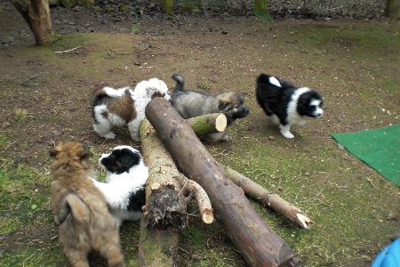 7 Wochen: Der Umzug in das schöne große Außengehege brachte ganz neue Eindrücke für die Welpen. Viele Spiel- und Klettermöglichkeiten machen den Rackern und der Mama unheimlich viel Spaß. Quin führt mit seinen 6 kg, obwohl man es ihm nicht ansieht, seine Geschwister wiegen jetzt 5,6 - 5,8 kg. viele Bilder im folgenden Link: