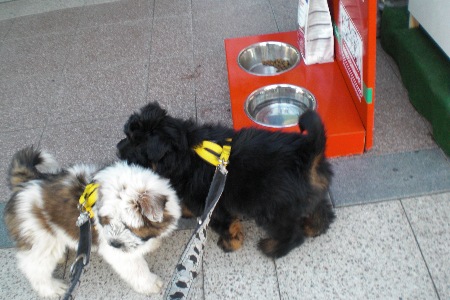 8 Wochen: am 10.03.12 erhielten die Q-chen ihre Impfung und den Chip transplantiert. Die Wurfabnahme wurde durchgeführt und mit 8,5 Wochen dürfen unsere Kleinen nun langsam ihre Köfferchen packen und von ihren Familien abgeholt werden. Die Tage sind abwechslungsreich. Spazieren gehen im Geschirrchen, Auto fahren und im Einkaufscenter viele Menschen sehen. Durch Automatiktüren gehen wir gemeinsam und die neuen Eindrücke sind plötzlich gar nicht schlimm. Zu Hause wird gespielt, Besuch kommt und Kinder, die mit den Welpen spielen. Die Q-chen lassen sich gern kämmen, denn das müssen sie lernen, damit ihr Rauhaar-Fell auch weiterhin schön gepflegt ist.