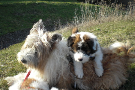 Bea mit ihrem kleinen schwarzen Punkt re. an der Nase... den hat jetzt auch ihr Welpe - es ist immer lustig , was man bei den Welpen wiederentdeckt :-)